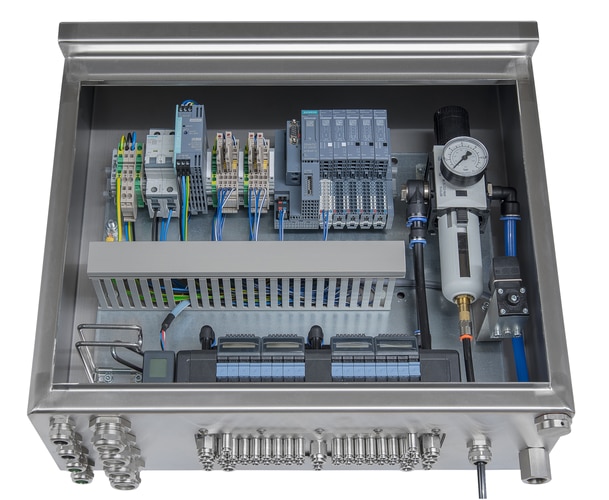## Bürkert Tipo 8614: Automação Higiênica com PROFIBUS O **Bürkert Tipo 8614 (SKU 343756)** é um sistema de automação projetado para atender às exigências da indústria de alimentos e bebidas, farmacêutica e outras aplicações que demandam alta higiene. O design otimizado para ambientes sanitários e a comunicação PROFIBUS DPV1 garantem a confiabilidade e eficiência no controle de processos. ### Principais recursos * Design higiênico, ideal para ambientes sanitários. * Dimensões de 810,00 mm x 549,00 mm x 210,00 mm. * Configuração com 1 ilha. * Compatível com o sistema 8652. * Comunicação PROFIBUS DPV1. * Faixa de temperatura de operação: 0,00 °C a 40,00 °C. * **Proteção IP65**. ### Aplicações e benefícios O Tipo 8614 é ideal para controlar processos em ambientes que exigem alta higiene, como na indústria de alimentos e bebidas. Ele oferece: * Controle preciso e confiável de válvulas e outros dispositivos. * Facilidade de integração com sistemas de automação existentes. * Redução de custos operacionais. * Maior segurança e higiene nos processos. * Otimização da produção. Para mais informações sobre o Bürkert Tipo 8614 e como ele pode otimizar seus processos, entre em contato conosco: Fale Conosco.