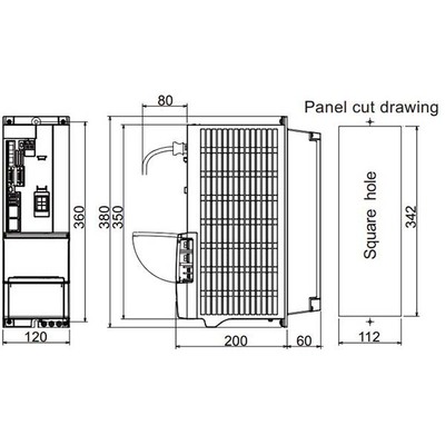 A unidade utiliza um método de controle senoidal PWM e controle de corrente, com um processador dedicado que eleva a velocidade de controle e melhora o desempenho básico. Seu design com ventilação forçada garante a dissipação térmica adequada, permitindo operação contínua em temperaturas ambientes de 0 a 55°C, com grau de proteção IP20.