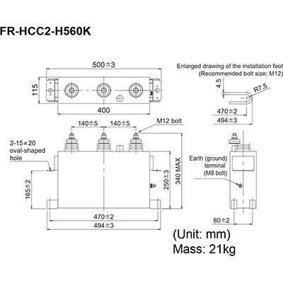 Este filtro capacitor é projetado como um acessório para o inversor de frequência FREQROL FR-H560K da Mitsubishi Electric.