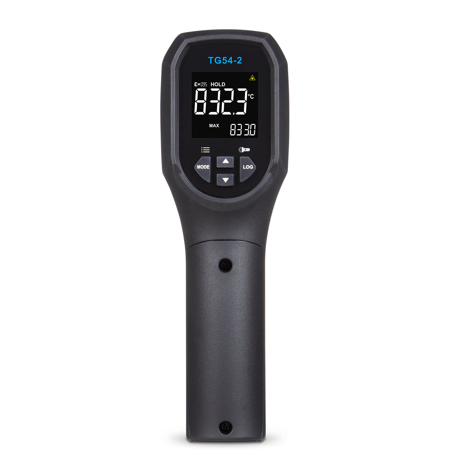 TG54-2 mede temperaturas que variam de -30 °C a 850 °C de distância segura usando tecnologia infravermelha com uma proporção de ponto de laser de 20: 1