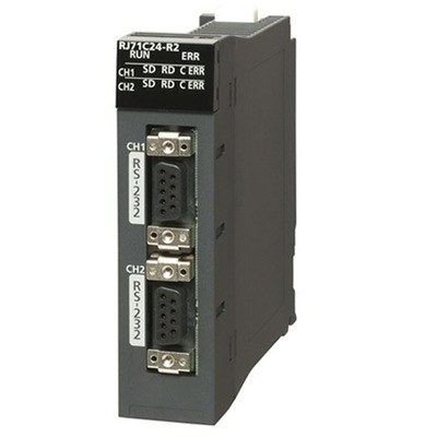 Este módulo é uma unidade de comunicação da série MELSEC iQ-R da Mitsubishi Electric. É equivalente ao modelo RJ71C24R2C.