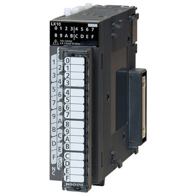 Módulo de Entrada Digital AC MELSEC-L LX10 Mitsubishi Electric Módulo de entrada digital AC MELSEC-L da Mitsubishi Electric, SKU LX10, com 16 entradas digitais (100-120Vac) e conexões por borne parafuso, ideal para montagem em trilho DIN.