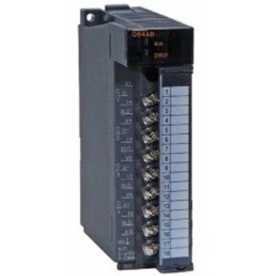 O Módulo de Entradas Analógicas Q64AD da Mitsubishi Electric, parte da série MELSEC-Q QnU, é uma unidade de entrada/saída (I/O) dedicada à aquisição de sinais analógicos em sistemas de automação industrial. Este módulo expande a capacidade de entrada do controlador lógico programável (CLP) com quatro canais analógicos configuráveis para operar com sinais de tensão ou corrente, essenciais para a leitura de dados de sensores e instrumentos de medição.