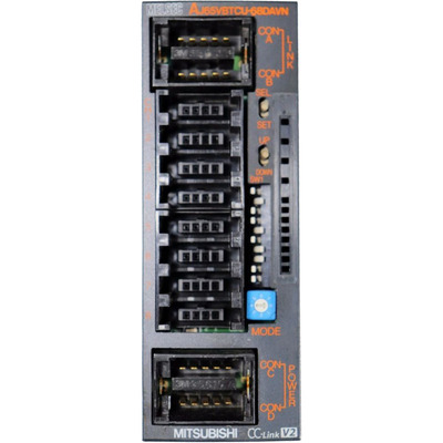 Ele oferece 8 saídas analógicas com faixa de -10 a +10Vcc e resolução de 4000 pontos. O módulo é equipado com conectores de engate rápido (one-touch) e capacidade de comunicação via CC-Link.
