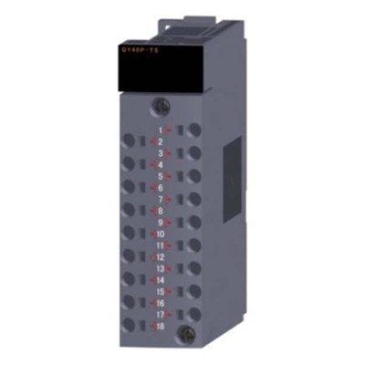 A conexão dos dispositivos é realizada através de bornes de mola, facilitando e agilizando a instalação e manutenção. O código do fabricante é QY40P-TS, sendo comercializado como um componente da linha MELSEC-Q.
