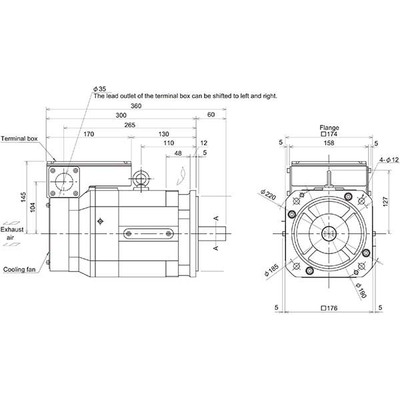 O motor possui montagem em flange de 174x174mm e grau de proteção IP44. Foi projetado para operar em temperaturas ambientes de 0 a +40°C.