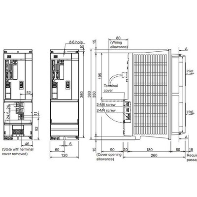 Com tensão de alimentação na classe de 400V, que abrange de 380Vac a 480Vac (ou 513Vdc a 648Vdc com entrada DC), e corrente nominal de 32A, o dispositivo é adequado para diversas máquinas industriais. Seu design inclui ventilação forçada para garantir o resfriamento em operação contínua.