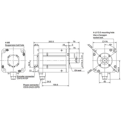O motor oferece uma potência nominal de 7000W (7kW) e opera em uma classe de tensão de 400Vac. Com torque nominal de 22.3Nm e velocidade rotacional nominal de 3000rpm, ele é adequado para uma ampla gama de tarefas industriais.