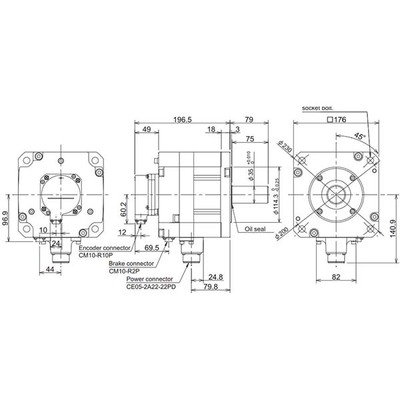 Design straight shaft built-in e/m brake built-in absolute feedback encod. (1Mppr) medium inertia