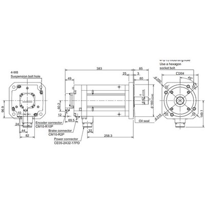 Com grau de proteção IP67, este servo motor é resistente à poeira e imersão temporária em água, garantindo operação confiável em ambientes desafiadores. A montagem é feita por flange de 180x180mm e ele opera em temperaturas ambientes de 0 a 40°C.
