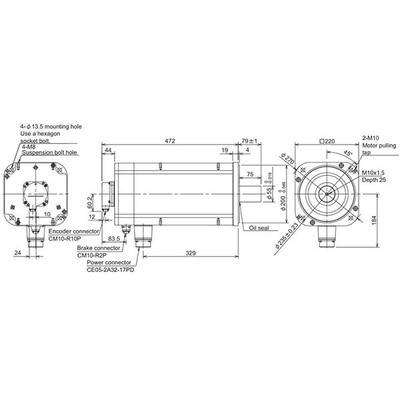 Projeto Eixo reto com freio e/m integrado, encoder absoluto integrado (1Mppr), baixa inércia, refrigeração natural