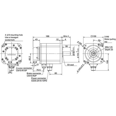 | Projeto | Eixo reto com freio e/m integrado, encoder absoluto integrado (1Mppr), baixa inércia, refrigeração natural |