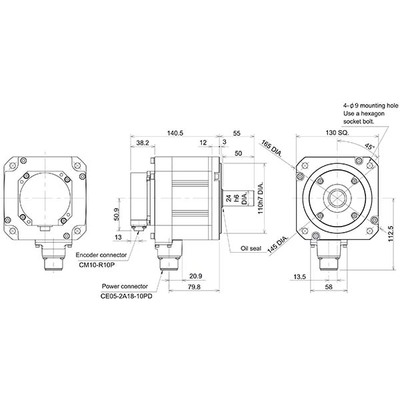 | Modo de montagem | Montagem de flange 130x130mm |
