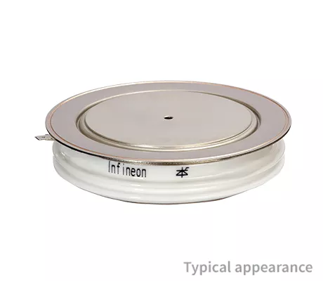 O tiristor de controle de fase T2200N16H100 da Infineon Technologies é um componente de alta potência projetado para aplicações industriais exigentes. Este tiristor de disco opera com uma tensão de bloqueio de 1600V e capacidade de corrente de 2200A, apresentando um encapsulamento cerâmico hermético e robusto que garante alta confiabilidade em ambientes agressivos. O design otimizado do T2200N16H100, incluindo sua otimização para aplicações de bypass em sistemas UPS (Uninterruptible Power Supply), oferece perdas em estado ligado reduzidas, mesmo com sistemas de fixação compactos, otimizando o projeto de circuitos. A tecnologia de contato por pressão empregada nos chips oferece excelente estabilidade de bloqueio e alta capacidade de corrente, tornando o T2200N16H100 uma escolha ideal para inversores de frequência, sistemas de controle de motores e outros dispositivos de comutação de alta potência.